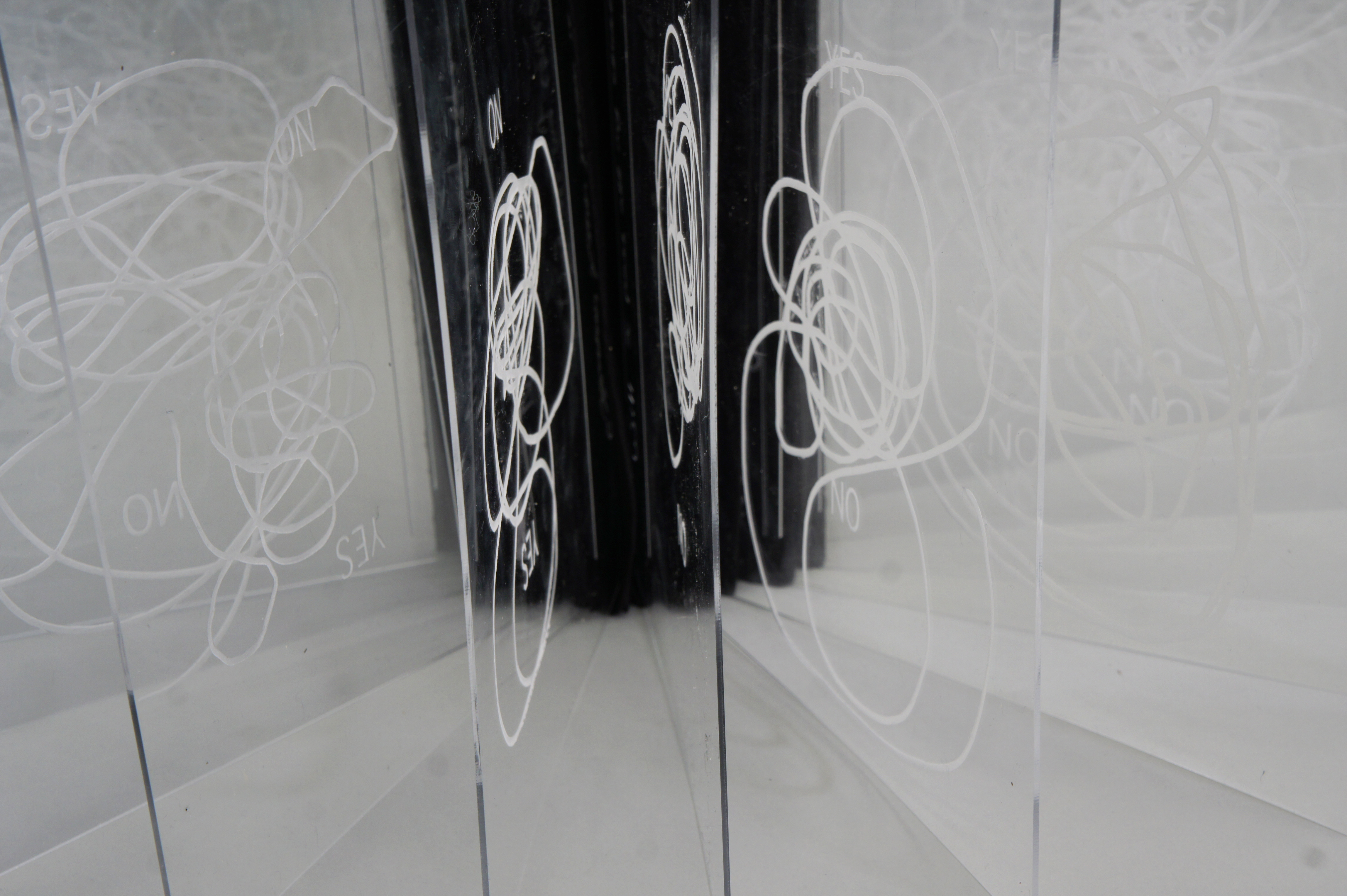 For this work, I looked for 12 people to help me with the preparation. I asked them to write down a question that they most wanted to know, which must be a question that could be answered with YES or NO. Then, the person that asked the question and I would hold a pen together and move it around unconsciously on a paper with printed YES and NO on it.